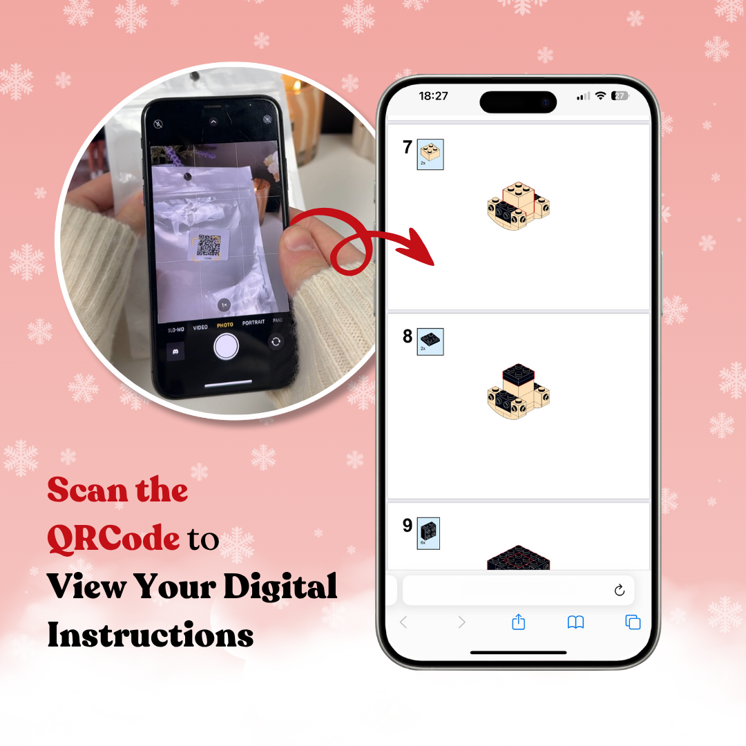 Recieve your peresonalized brick set, scan the QR code provided and have fun building!